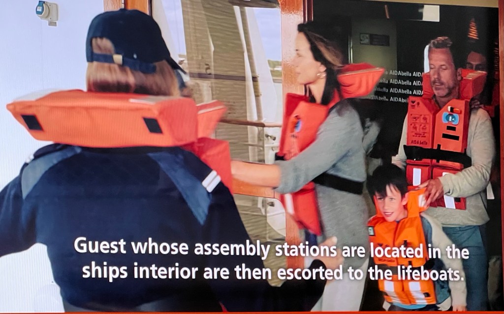 Zwischen 14:00 und 16:30 Uhr sieht man alle Gäste mit ihren angelegten Rettungswesten über Schiffs rennen. Nachdem man seine Kabine bezogen hat, absolviert man die digitale Sicherheitseinweisung, legt seine Rettungsweste an und findet sich an dem zugeteilten Sammelplatz ein. Dort werden die Boardkarten von allen Reisenden gescannt und die Sicherheitseinweisung ist erledigt.