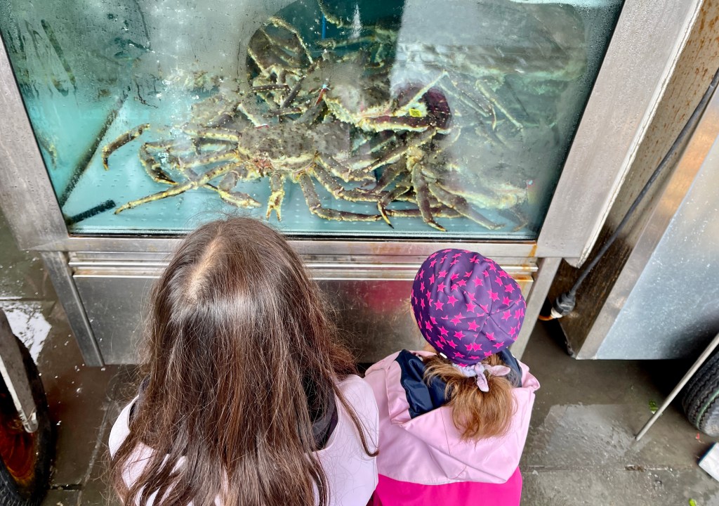 Wir gingen durch die kleinen Gassen von Bryggen. Bryggen ist wohl das bekannteste Stadtviertel von Bergen. Mit seinen kleinen bunten Häusern und Gassen, gibt es der Stadt eine schöne Abwechslung. Die Gassen erinnern etwas an einen Ausflug ins Phantasialand. Von dort aus gingen wir zum Fischmarkt, wo wir unzählige Sorten Fisch bewundern konnten.