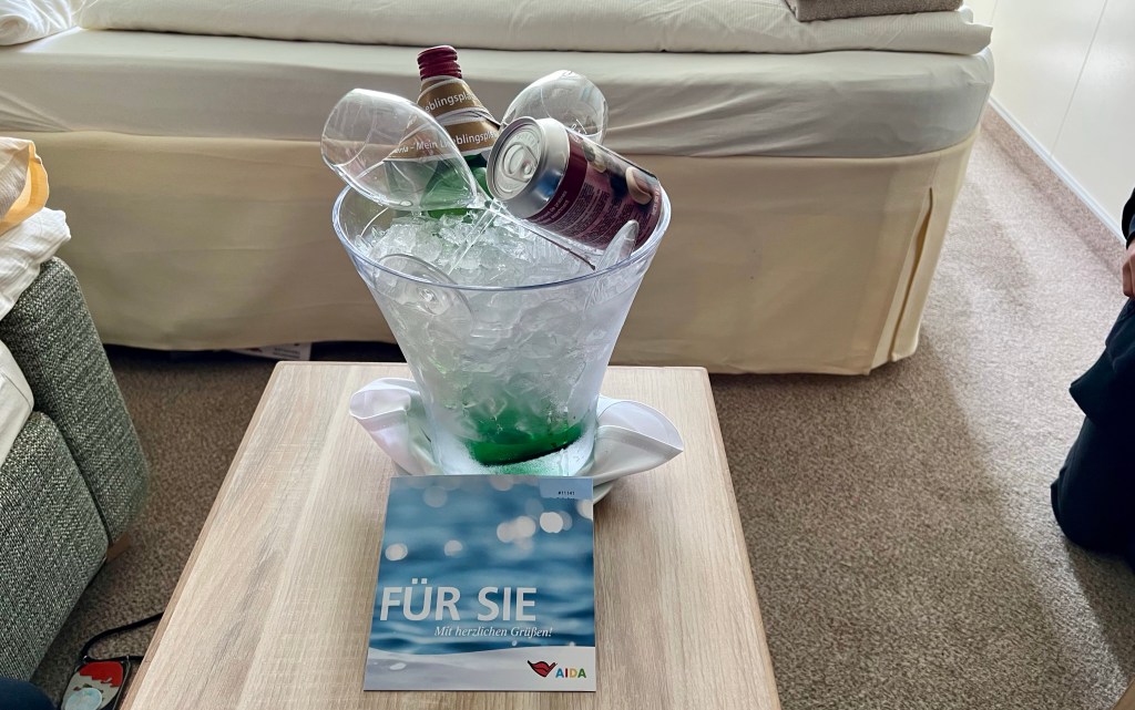 An Bord angekommen erwartete uns auf der Kabine eine riesige Überraschung. Steffi, eine liebe Bekannte, die sonst auf der AIDA Perla als Fernwehexpertin unterwegs ist, hatte uns von der AIDA blu einen Kabinengruß gesendet! Auch hier nochmal: Vielen lieben Dank, liebe Steffi!!!