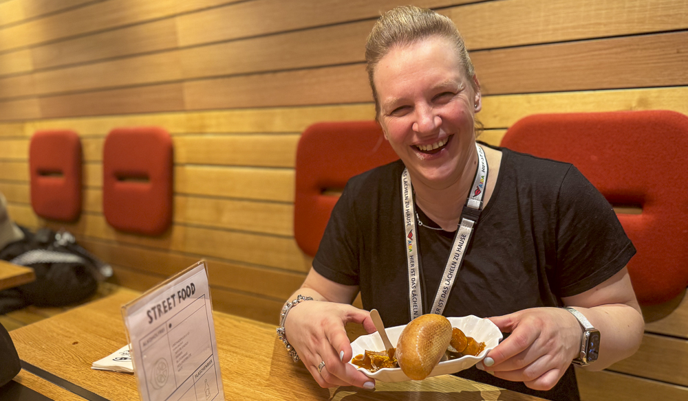 Yvonne gönnte sich nun auch endlich ihre wohlverdiente Curry-Wurst und im Anschluss an den kleinen Snack, ich hatte selbstverständlich auch noch schnell einen kleinen Döner, haben wir uns ein nettes Plätzchen im Theatrium gesucht… Zwischenzeitlich waren Lya & Leny noch im Fuego, um das Frühstück nachzuholen ;-).