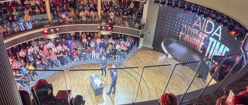 Nach dem Essen ging es zur Prime Time ins Theatrium, welcher wir von Deck 8 beiwohnten. Wir haben vier Tombolalose gekauft und wollten schauen, ob das Glück auf unserer Seite war. Nicht ganz, aber dafür unterstützten wir mit unseren Losen das Projekt „Cruise & Help“, welches Schulen in den Ländern der Crew Mitglieder baut. Ein schönes Projekt!