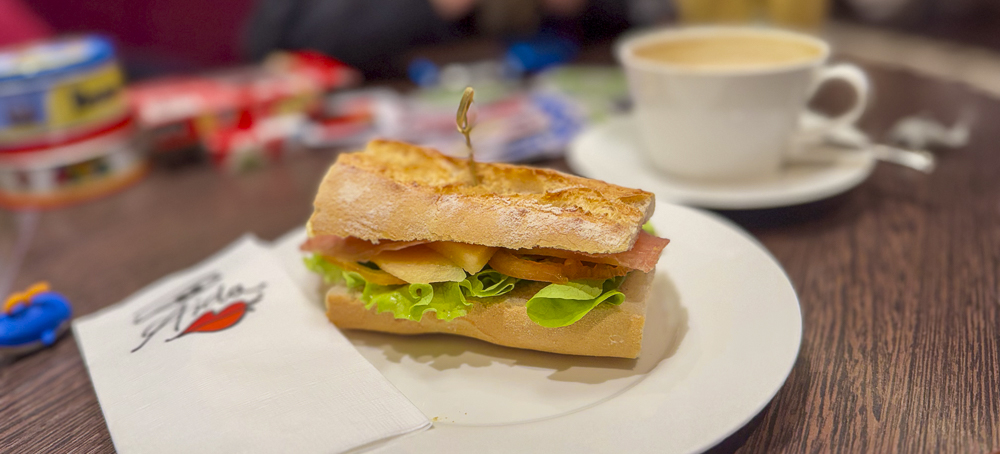 SID probierte ein belegtes Baguette mit Melone und Schinken, welches er mit ausgezeichnet bewertete :-).