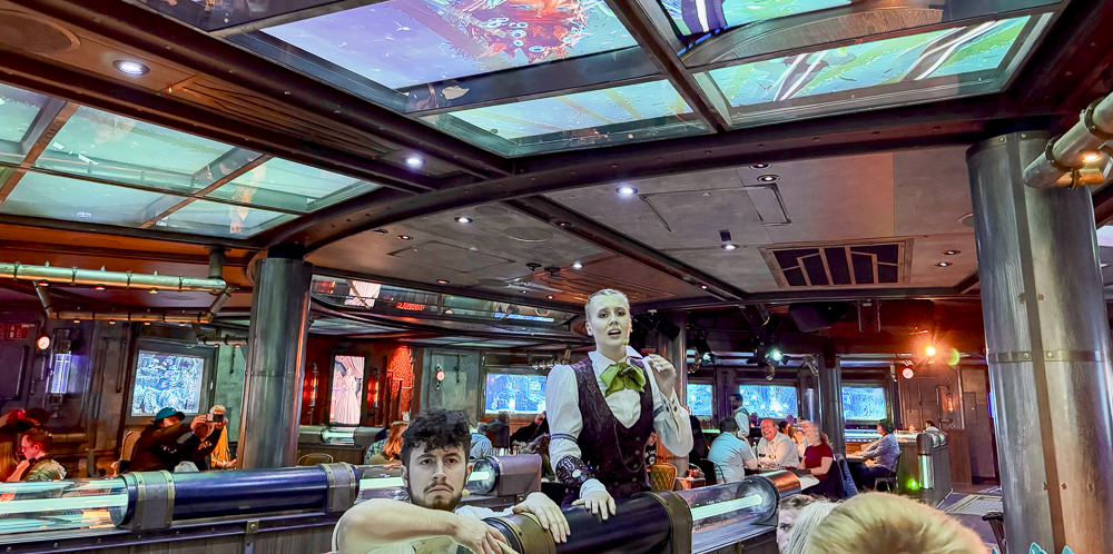 Ein weiteres Highlight unserer Reise erwartete uns dann zum Abendessen, als wir zum „Time Machine“ Dinner gegangen sind. Was für ein Erlebnis; schon die Fahrt mit dem Aufzug runter in die Zeitmaschine, die Aufmachung des gesamten Restaurants und nicht zuletzt die fantastische Show und der herausragende Service runden das Erlebnis-Dinner ab. Auch die Speisen und das Kindermenü waren wirklich vorzüglich und eine sehr willkommene Abwechslung zu der nicht ohnehin schon vorhandenen Vielfalt in den bekannten Restaurants.