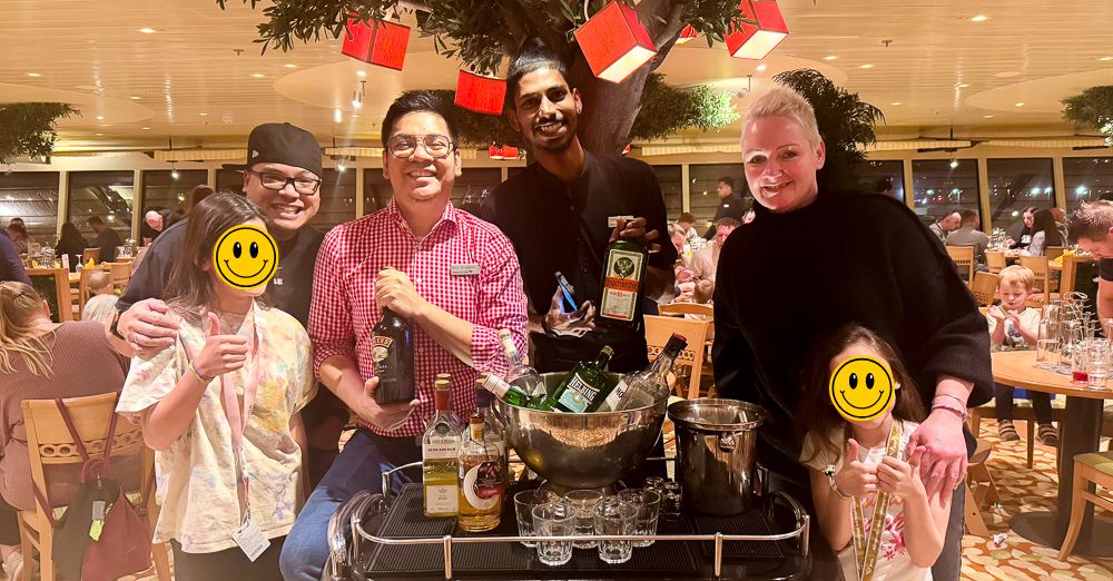 Das Sail-Away haben unsere Mädels auf dem Außendeck (Deck 17) verfolgt, bevor wir den Abend bei Ni in der Art-Bar verbracht haben. Lya hat fast den ganzen Abend mit anderen Kindern an einem Spieltisch verbracht, Leny hat am Shop-Glücksrad gedreht und einen 5%-Gutschein gewonnen und ich hab in einem der bequemen Sessel gesessen, weiter an unserem Blog geschrieben, das lebhafte Treiben beobachtet und mich sehr gut mit Max unterhalten.