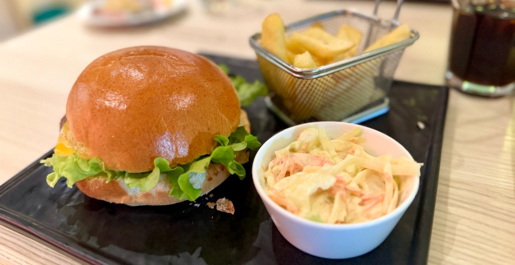 Sarah und Max sind noch ein wenig in Cherbourg geblieben, während Jeannine, Oma Moni und wir vier zum Mittagessen ins Best Burger@Sea gegangen sind. Es war sehr lecker, auch wenn’s natürlich kein Vergleich zu einem ausgewachsenen Burgerbräter an Land ist.