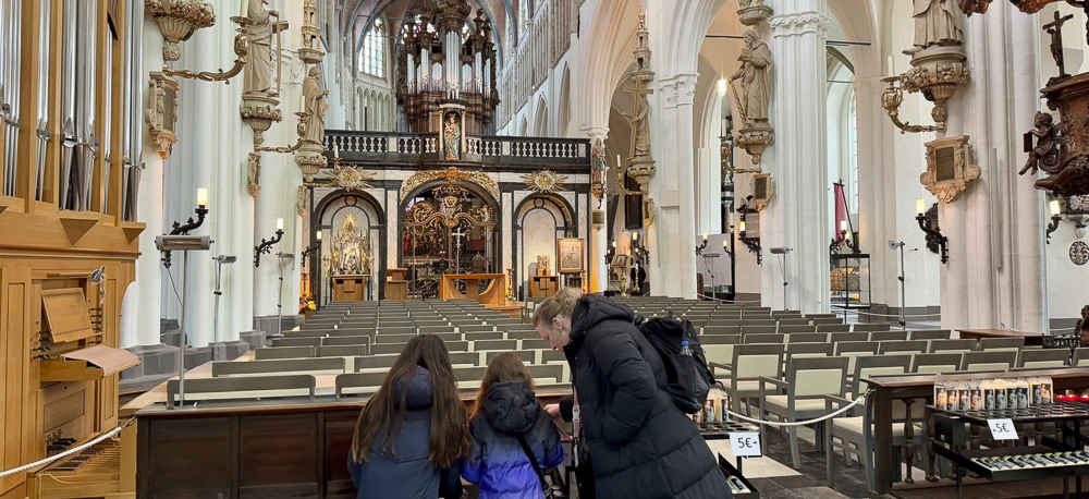 Das Wetter wurde immer besser, die Wolkendecke riss auf und sogar die Sonne ließ sich endlich blicken. Wir sind weiter durch Brügge geschlendert, haben Waffeln am Stiel gegessen, viele weitere Schokoladen-Läden bestaunt und drei Kerzen in einer wunderschönen Kirche angezündet.