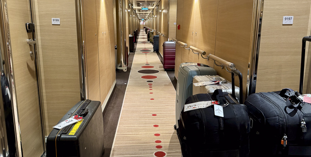 Auf dem Weg zu unserer Kabine haben wir dann auch das traurigste Bild einer AIDA Kreuzfahrt erblickt; die Kabinengänge voll mit Koffern vor den Kabinentüren… Auch wir haben unsere vier Koffer vor unsere Kabine gestellt, nochmal geschaut, ob wir wirklich alles eingepackt haben und uns dann schlafen gelegt.