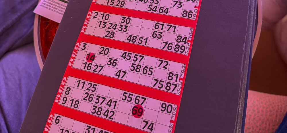 Auf Deck 8 fanden wir einen schönen Platz und machten uns für die Bingo Runde bereit. Lya und Lea gingen noch kurz ins Four Elements, da man dort Clubbie-Magnete basteln konnte. Die Bingo-Runde begann und es war sooooo spannend… …relativ schnell fehlten uns nur noch drei Zahlen… …trotzdem kein Glück. Ein Mann von Deck 7 rief Bingo und gewann mal eben € 2.660,-.
