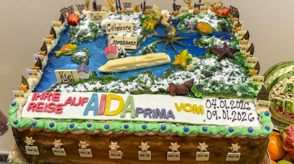 Für das Abendessen gingen wir ins Markt Restaurant. Natürlich durfte die obligatorische Reisetorte nicht fehlen. Am letzten Abend ist immer alles anders eingedeckt und besonders verziert.