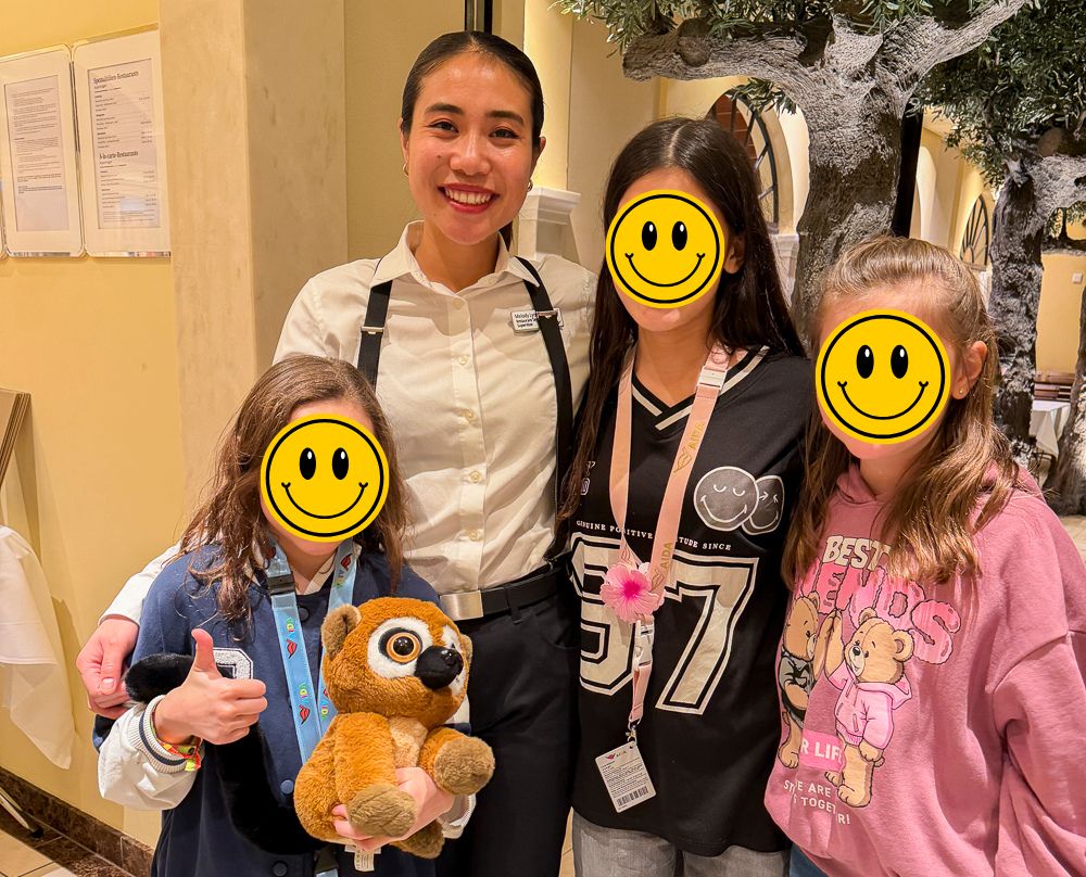Bevor wir uns die Kopfhörer für die Silentparty holten, welche aufgrund der vielen Wünsche von den Gästen nachgeholt wurde, packte ich noch ein paar Dinge in den Koffer und brachte SID einen Tee. Die Silentparty war ein wirklich schöner Abschluss unserer Reise, auch wenn wir leider Vieles in den letzten Tagen ohne SID erlebten. Wir sangen und tanzten zu verschiedenen Musikrichtungen und genossen einfach den Abend. Lea und Lya wollten nochmal zur Scharfen Ecke. Ich begleitete sie und wir drehten dann nochmal eine Runde über das Schiff, um im Four Elements unsere „Lächel-Momente“ abzugeben, die auch nach der Vergabe des Smiling Starts noch an die betreffenden Crew-Mitglieder weitergegeben werden. Dann brachten wir Lea zurück in den Beachclub. Leny feierte mit Penelope, Helena, Marcel und Christiane und wir besprachen, dass sie sie gegen 0:00 Uhr zurück auf die Kabine schicken sollen. Sie sollte den letzten Abend in vollen Zügen genießen. Lya und ich gingen in die Kabine, um den letzten Koffer zu packen. Die große Kunst ist es, alles einzupacken, aber trotzdem für den nächsten Morgen noch etwas zum Anziehen zu haben, da wir die Koffer immer vor die Tür stellen, damit sie bei der Ausschiffung ins Terminal gebracht werden :-D. Pünktlich um 0:00 Uhr kam Leny, checkte noch ihre Sachen und wir stellten unsere Koffer vor die Kabine… Der traurigste Anblick auf einer Kreuzfahrt, wenn alle Koffer in den Fluren stehen.