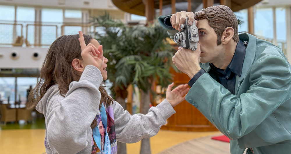 Nachdem wir alles zusammengepackt hatten, verließen wir pünktlich um 09:00 Uhr die Kabine und trafen uns mit dem Rest unserer Reisegruppe im Theatrium. Hier hatten wir es uns auf einer Sitzecke gemütlich gemacht und bestellten nochmal die gewohnten Kinder-Cocktails. Da Christiane, Marcel, Lea, Penelope und Helena entschieden hatten direkt nach Hause zu fahren, verabschiedeten wir uns und sie machten sich auf den Heimweg. SID blieb weiter im Theatrium sitzen, während wir Mädels nochmal einen ausgedehnten Spaziergang über das Schiff machten. Wir schossen noch ein paar Fotos im Beachclub und schauten zu, wie der komplett leere Pool neu gestrichen wurde.