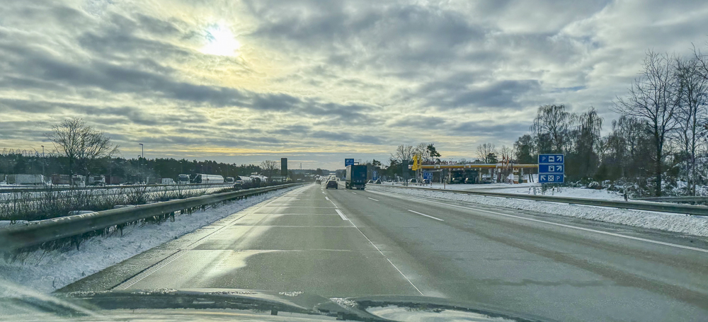 Der Wecker klingelte am Samstag um 08:00 Uhr. Schnell stellten wir fest, dass nun auch Leny Fieber hatte und über Halsschmerzen klagte. Lya und ich machten uns nochmal auf den Weg zur Apotheke und zu einem Bäcker, um Frühstück für die Fahrt zu besorgen. Nach der spontanen Nacht in Kiel brachen wir gegen 11:30 Uhr auf, um zurück nach Hause zu fahren. Da SID nach wie vor mit Fieber, Kopfschmerzen und Husten bis zum Erbrechen zu kämpfen hatte, klemmte ich mich hinter das Steuer.